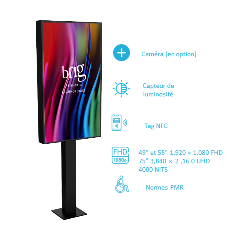 L’écran vitrine BNG offre une luminosité exceptionnelle et un contraste élevé, permettant une communication efficace tout au long de la journée. Son capteur de luminosité garantit une lisibilité optimale à tout moment. Cette innovation majeure donne de l’éclat à vos vitrines et rend vos contenus percutants, pour attirer l’attention et marquer les esprits.