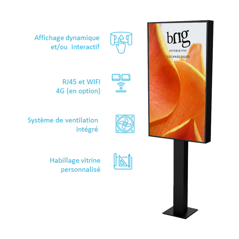 Donnez vie à votre vitrine. L’écran vitrine est idéal pour attirez l’attention des passantes.